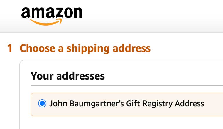 NOTE: When prompted to "Choose a shipping address", please select John Baumgartner's Gift Registry Address